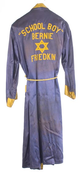 His toughness was reserved for his ring battles. Bernie Friedkin was a student of the sport’s history. The basement walls of his family home were decorated with photos of the great fighters of that era and desiring to emulate them he built a makeshift ring in his basement where he would invite friends over after school to spar with him. He was a master technician who lost only eleven times in seventy-five fights. Probably, his greatest fight was to hold the legendary Kid Chocolate to a draw in 1937 at the Broadway Arena. Ironically, the fight for which he is best remembered was his “war” against neighborhood rival, Al “Bummy” Davis. It was a heroic effort by Bernie, who was stopped in a see-saw battle but won the respect of the entire sports world.